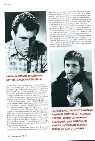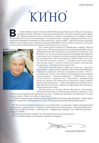 В газете «Культура» № 2 — несколько материалов к 80-летию. В том числе — подборка ответов Высоцкого на различные вопросы; статья о фильме «Короткие встречи»; интервью с Анатолием Бальчевым.