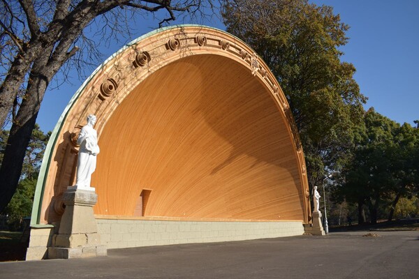 Ну дореволюционное фото говорит только о том, что перед Музыкальной раковиной были установлены скамьи. Сейчас их нет. Но похоже в 70ые они были и по утверждению Бориса Матвеевича вмещали 1,5 тысячи человек. Деревья там есть, так что кому не досталось билета вполне могли и на деревья залезть.