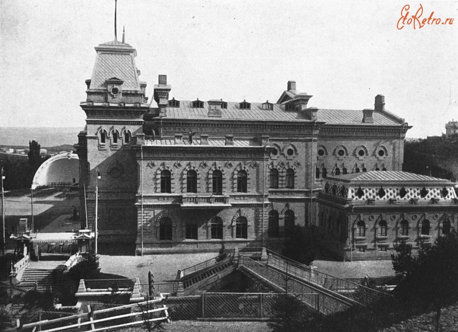 Я хотел туда сходить и сфотографировать как там сейчас что выглядит, но там сейчас ремонт, вход через мостик закрыт, а другой вход мне искать было некогда. Как видно из последнего фото, филармонию окружает естественный «забор» в виде уступа скалы.